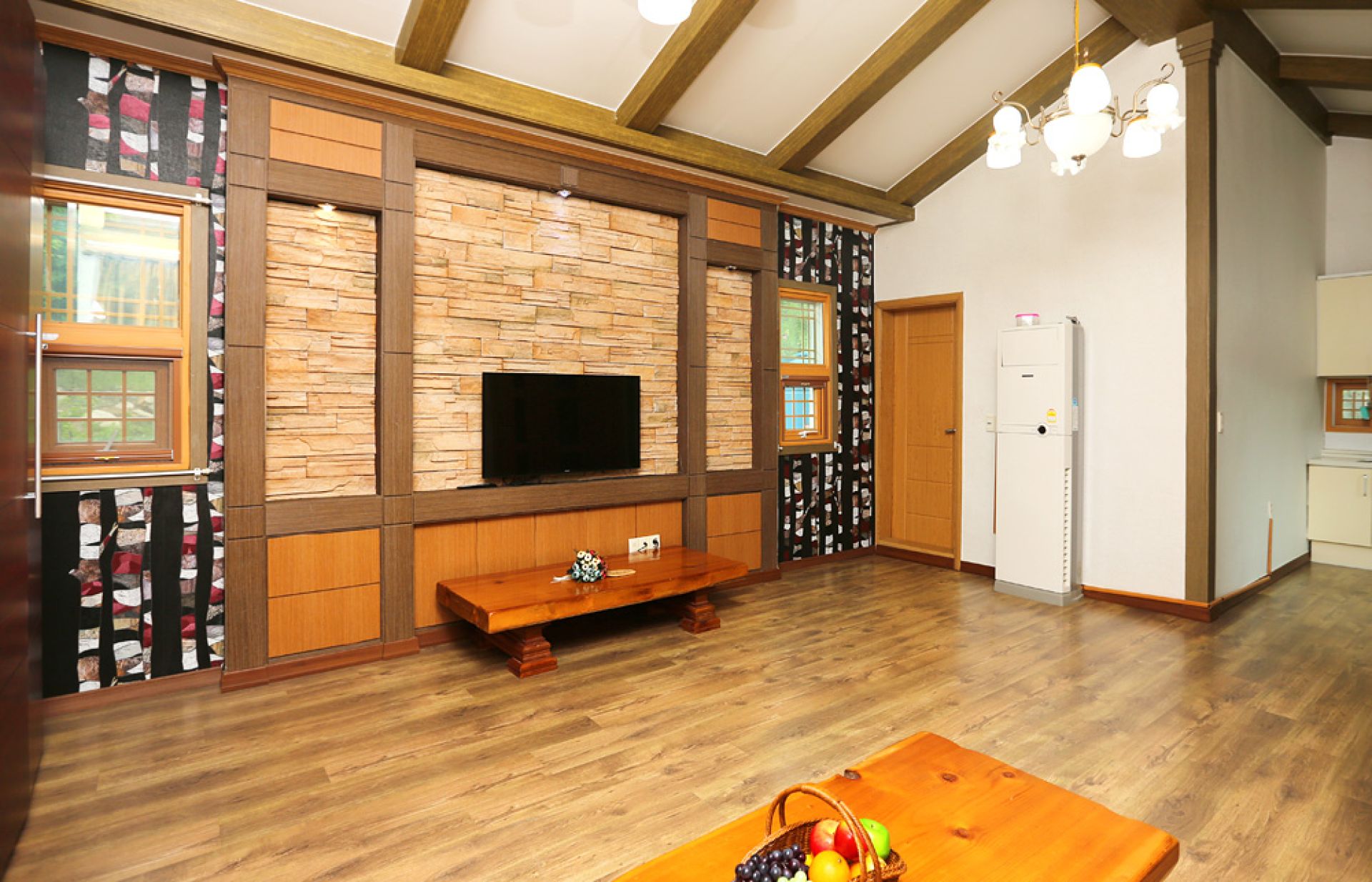 - 시설 : + TV, 침대(침구), 화장대, 냉장고, 에어컨, 화장실, 샤워부스, 드라이기 인덕션, 전기밥솥, 식탁 등