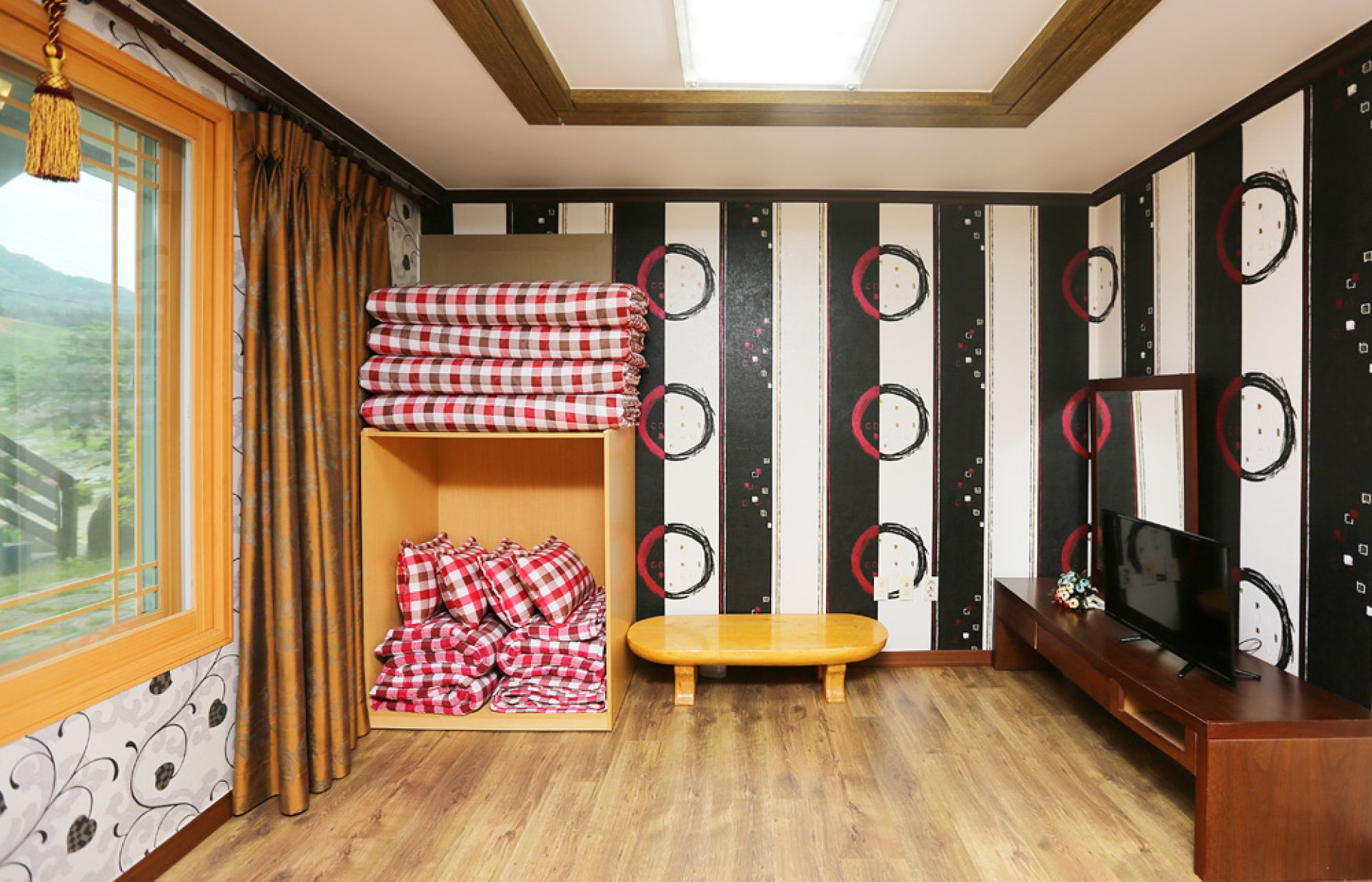 - 시설 : + TV, 침대(침구), 화장대, 냉장고, 에어컨, 화장실, 샤워부스, 드라이기, 전기쿡탑, 전기밥솥, 식탁 등